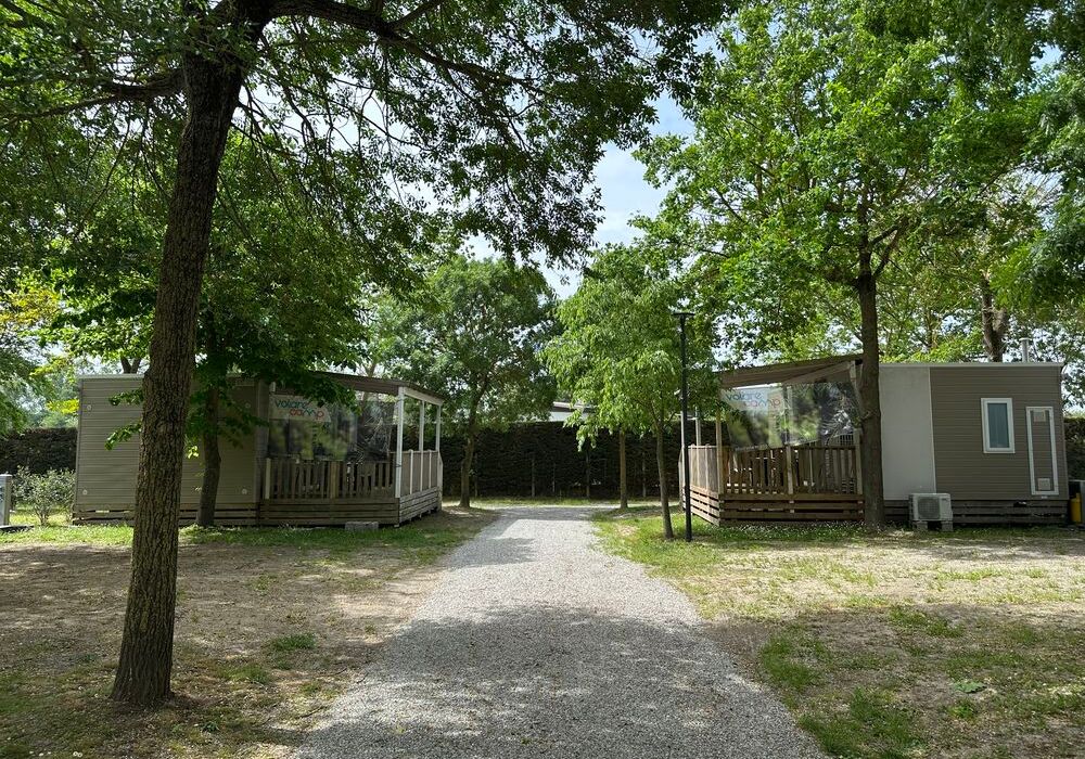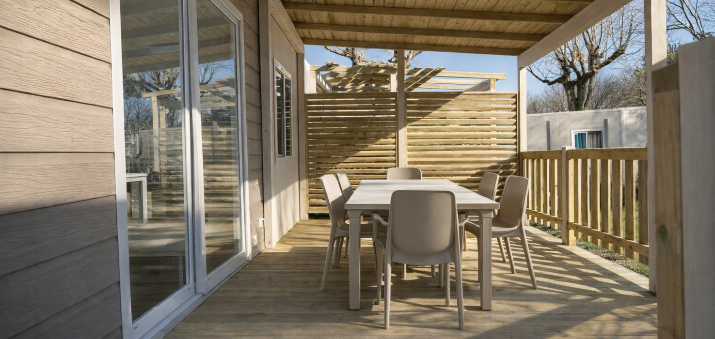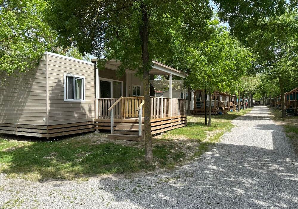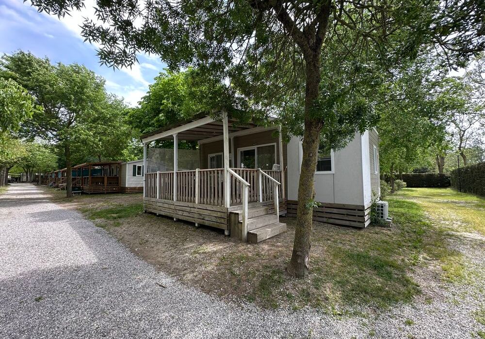 Mobile home in the pet zone. It has an area of approximately 31 square meters (7,75 m x 4 m) plus a terrace of 18 square meters. It can accommodate a maximum of 6 people and a child under the age of 3.