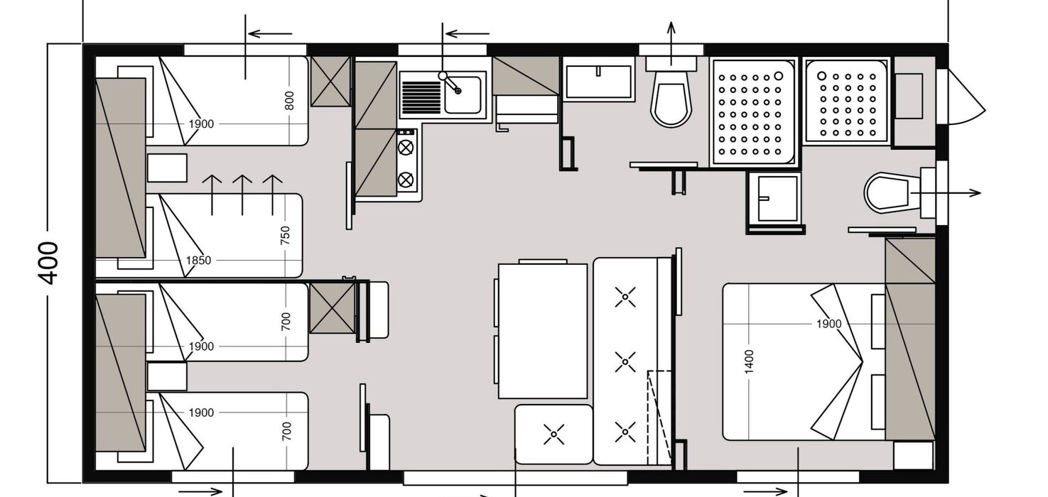 It has an area of approximately 31 square meters (7,75 m x 4 m) plus a terrace of 18 square meters. It can accommodate a maximum of 6 people and a child under the age of 3.